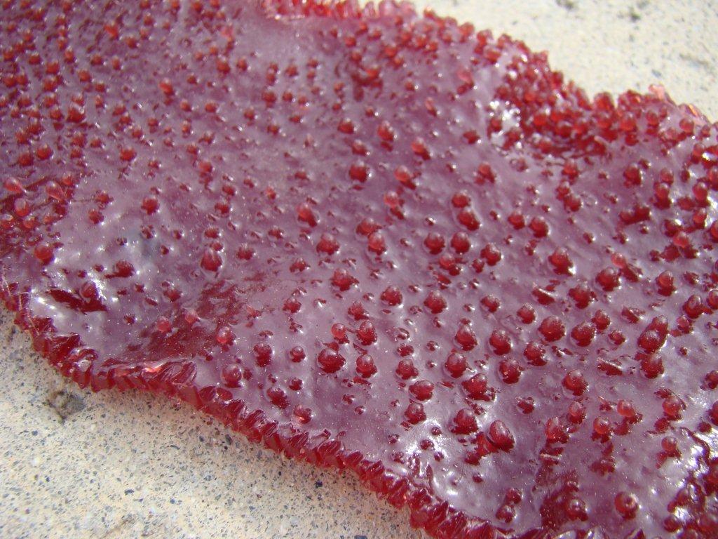 Turkish Towel Gigartina are single blade, red algaes with an unusual surface texture that resembles a bath towel. The surface is studded with ball shaped or tapered papillae.